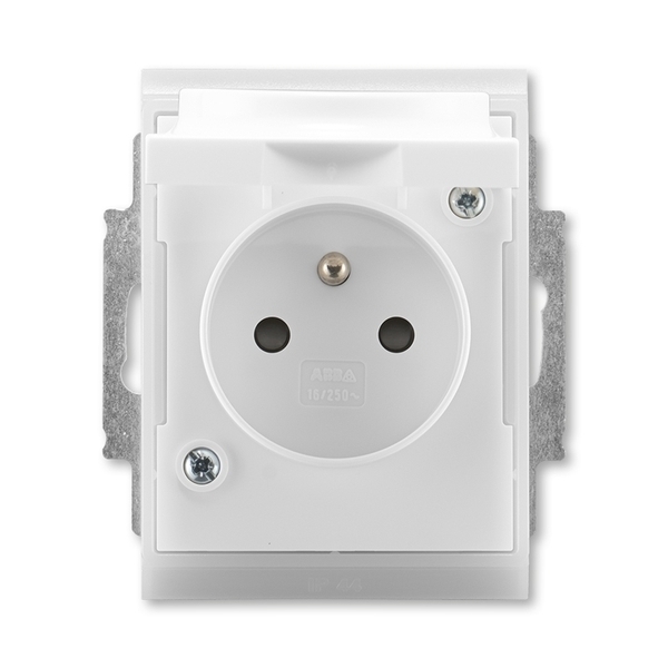 5518E-A02999 01 Zásuvka jednonásobná IP 44, s ochr. kolíkem, s víčkem, bílá/ledová bílá (Element, Time)