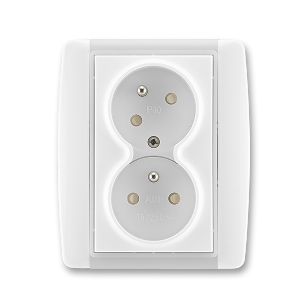 5513E-C02357 01 Zásuvka dvojnásobná s ochr. kolíky, s clonkami, s natočenou dutinou, bílá/ledová bílá (Element)