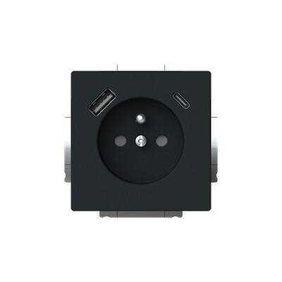 ABB - Future Zásuvka 1násobná s kolíkem, s clonkami, s nabíjením USB-A, USB-C, mechová černá, 20 MUCB2USBAC-885-500