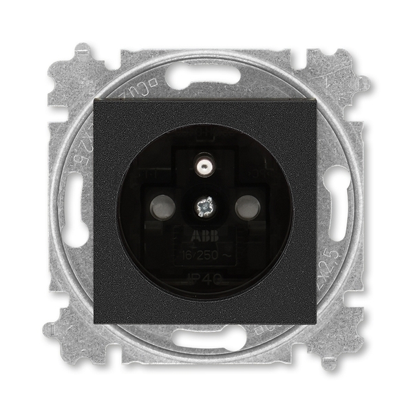 5519H-A02357 63 Zásuvka jednonásobná s ochranným kolíkem, s clonkami, bezšr. svorky, onyx/kouřová černá (Levit M)