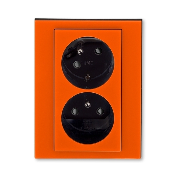 ABB - Levit Zásuvka dvojnásobná s ochrannými kolíky, s clonkami, s natočenou dutinou, oranžová/kouřová černá, 5513H-C02357 66