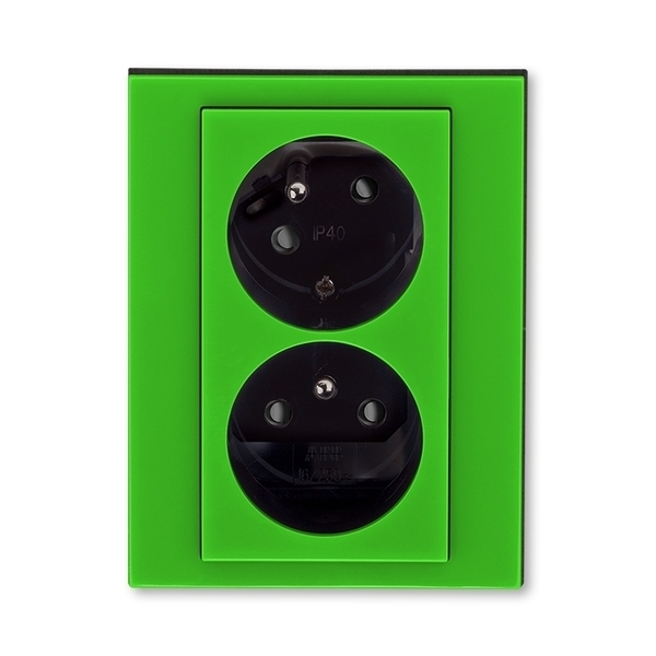 ABB - Levit Zásuvka dvojnásobná s ochrannými kolíky, s clonkami, s natočenou dutinou, zelená/kouřová černá, 5513H-C02357 67