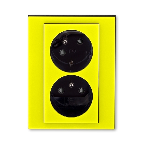 ABB - Levit Zásuvka dvojnásobná s ochrannými kolíky, s clonkami, s natočenou dutinou, žlutá/kouřová černá, 5513H-C02357 64