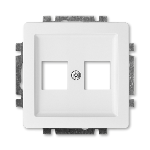 Pro upevnění dvou komunikačních zásuvek typu Modular-Jack (keystone), záslepek nebo reproduktorových svorek (max. doporučená šířka 18,3 mm). Rozměry otvorů: 19,4 × 14,8 mm