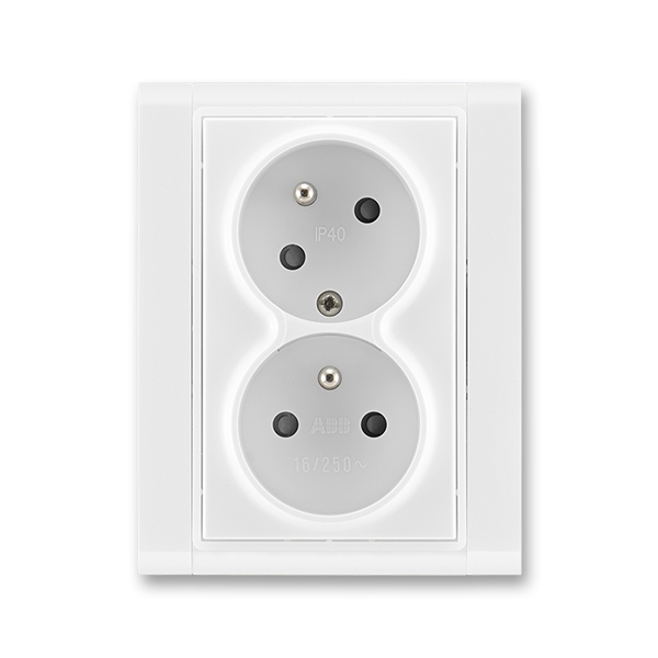 Zásuvka dvojnásobná s ochrannými kolíky, s clonkami, s natočenou dutinou IP 40 Barva: bílá / bílá |
