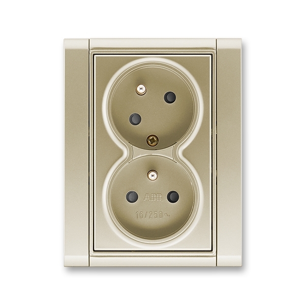 5513F-C02357 33 Zásuvka dvojnásobná s ochr. kolíky, s clonkami, s natočenou dutinou, šampaňská (Time)
