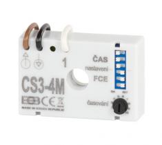 Spínač pod vypínač CS3-4M je v zapojení BEZ NULOVÉHO VODIČE a má možnost nastavení OSMI FUNKCÍ SEPNUTÍ.