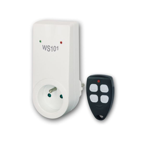 Dálkově ovládaná zásuvka WS101 nabízí široké uplatnění pro ovládání elektrických zařízení, pomocí bezdrátového přenosu mezi zásuvkou (přijímačem) a klíčenkou (vysílačem).