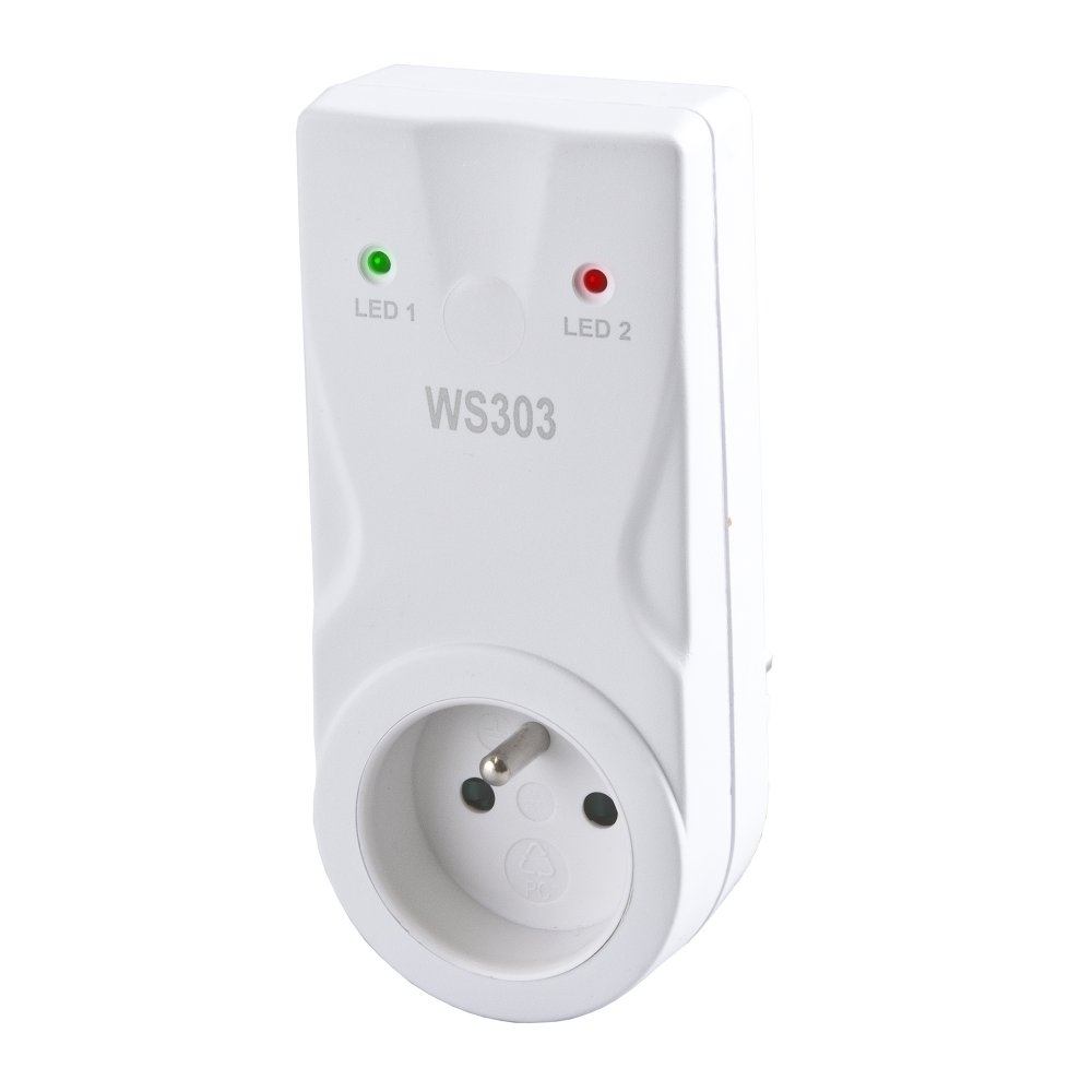 VLASTNOSTI: Pro dálkové zapínání/vypínání a časové ovládání elektrických zařízení. WS303 je možné ovládat až 16-ti různými vysílači s odlišnými funkcemi. Nastavitelná doba funkce časování je 1s až 8 hod.