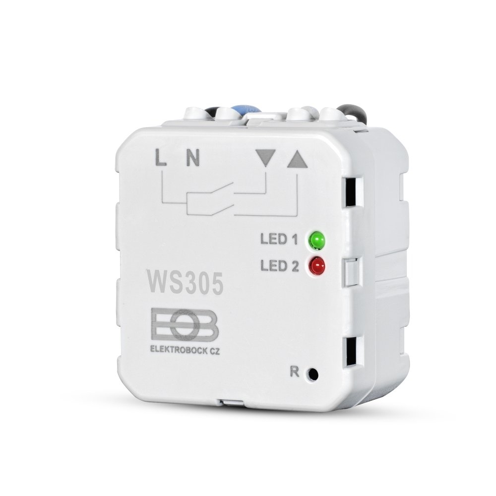 VLASTNOSTI: Přijímač WS305 slouží k dálkovému ovládání žaluzií, rolet, markýz a vrat. WS305 je možné ovládat až 16-ti různými vysílači. Maximální doba sepnutí relé je omezena na 2min.