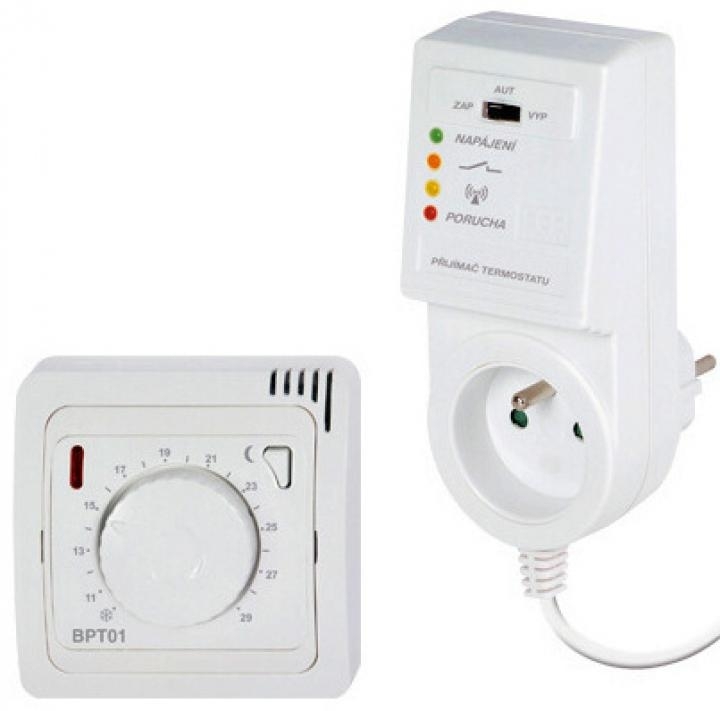 BPT013 je bezdrátový termostat se systémem samoučení kódů, jednoduchým ovládáním pomocí kolečka a přijímačem do zásuvky.