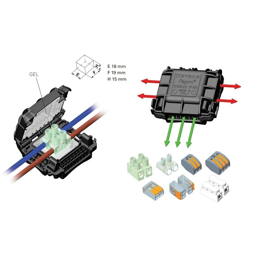Krabička gelová PAGURO 5725/23/0 IP68, pro ochranu spoje vodičů 2x0,2 - 4 mm2