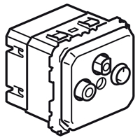 Televizní zásuvky Koncová zásuvka pro průběžnou instalaci Útlum 10 dB TV „samec“ Ø 9,5 mm, 4–68 MHz a 120–862 MHz RD „samice“ Ø 9,5 mm, 87.5 – 108 MHz. SAT typ „F“, 950 – 2400 MHz, umožňuje zpětný průchod proudu 500 mA DC. |