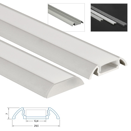 ML-761.015.02.3 Přisazený hliníkový profil PX, 30x7 mm, včetně mléčného difuzoru, 3m