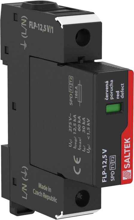 svodič bleskových proudů a přepětí, vhodné pro systémy TN a TT, instalace na vstupu do budovy, 60 kA(8/20), 12,5 kA (10/350)