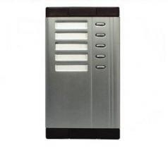 Systém: analogový 4+n Základní vlastnosti a provedení: - montáž samostatně, s tlačítkovými panely nebo kódovacím zámkem - 5 tlačítek pro vyzvonění domácího telefonu - informativní rozměry 110 x 199 mm (š×v) - podsvětlení jmenovek LED diody bílé - barva světle šedá-hliník elox, hnědá plast Provozní prostředí: - teplota -25°C až +40°C - vlhkost až 80% - nevhodná montáž do prostředí s vysokou prašností, vlhkostí, stékající a stříkající vodou, vibracemi a teplotami mimo rozsah Balení obsahuje: |