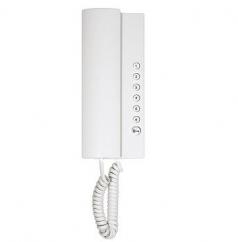Základní vlastnosti a provedení: - oboustranná komunikace s elektrickým vrátným (tlačítkovým tablem) - zábrana odposlechu - vyzvánění v domácím telefonu piezoelektrický měnič - odlišné vyzvánění od elektrického vrátného, protistanice (interkom), zvonkového tlačítka u bytu - přepínač hlasitosti vyzvánění - tlačítko ovládání elektrického zámku - 6 tlačítek pro vyzvonění protistanice (interkom) - informativní rozměry 82x197x49 mm (š×v×h) bez mikrotelefonní šňůry - informativní hmotnost 0,35 kg - nástěnné provedení - barva bílá - připojení do systému po dvouvodičové sběrnici - možnost připojení až tří dalších domácích telefonů se samostatným číslem (interkom) k hlavnímu domácímu telefonu