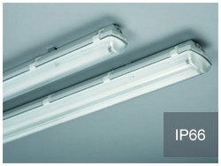 Dvouřadé plastové průmyslové LED svítidlo, s difuzorem z čirého polykarbonátu.