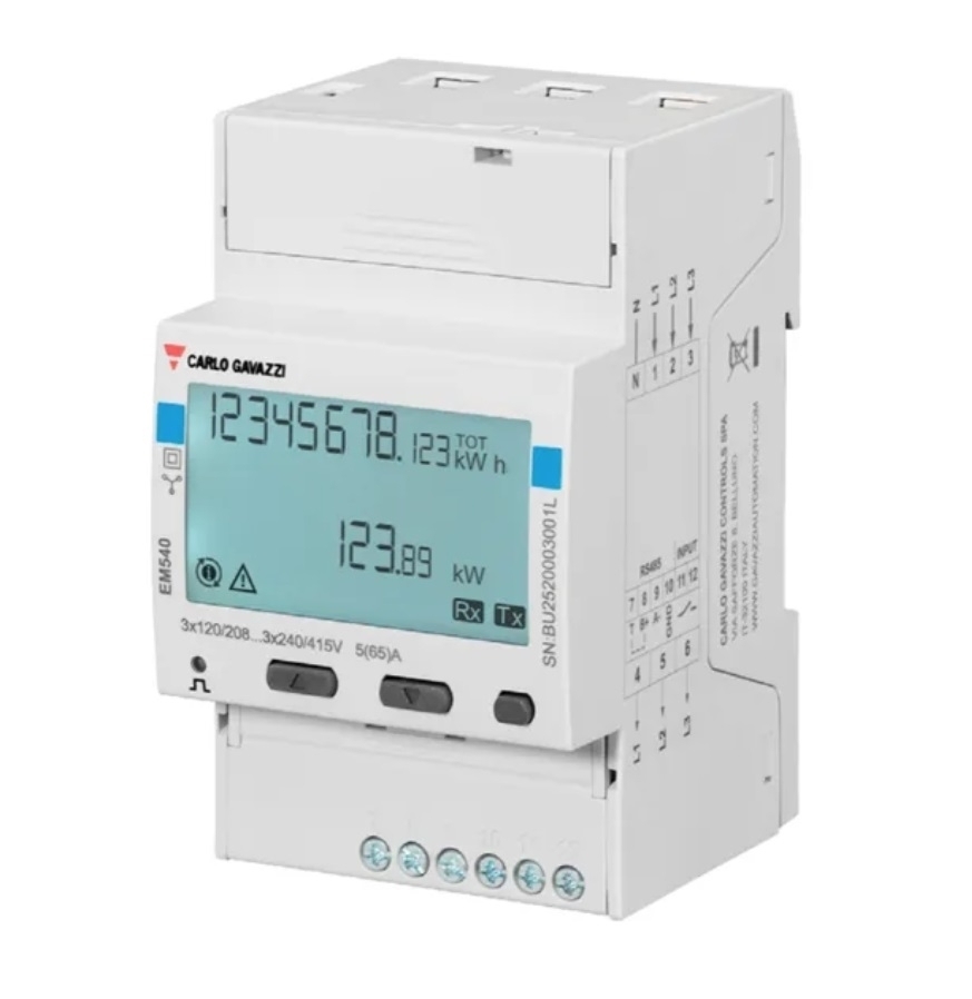 Victron EM540 je standardní zařízení pro měření výkonu a energie 3-fázové aplikace, například v rozvaděči, nebo pro měření výkonu FV střídače, AC generátoru nebo výkonu měniče nebo měniče/nabíječky. Jeho data se zobrazí na zařízení GX a portálu VRM.