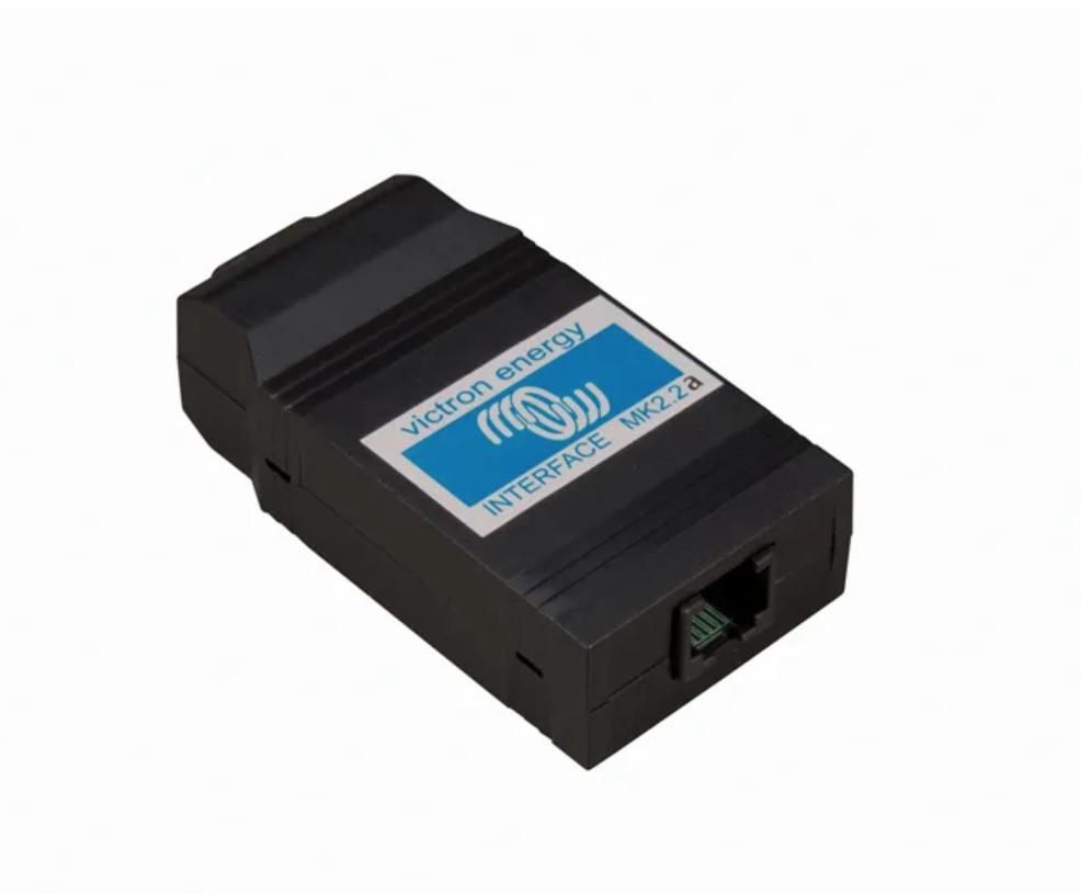 Počítačové rozhraní MK2.2b slouží k softwarovému nastavení měničů řady Phoenix a měničů/nabíječek řady MultiPlus a Quattro. Všechna tato zařízení mají standardní nastavení z výroby. Pro změnu standardního nastavení slouží toto rozhraní. Lze měnit parametry jako hodnoty napětí pro odpojení a opětovné připojení zátěže, charakter nabíjecího napětí, charakter připojování k síti v závislosti na napětí akumulátorů nebo odběru a mnoho dalšího. Nastavovací software VE Configure je zdarma ke stažení níže. Lze si ho vyzkoušet i bez tohoto rozhraní a nastavovaného zařízení. Na jedné straně zařízení je RS232 výstup pro připojení k počítači, na druhé straně je zdířka pro připojení UTP kabelu RJ45, kterým se připojuje k nastavovanému zařízení (není součástí dodávky). Jedná se o volitelné zařízení, které není pro chod nastavovaných zařízení bezpodmínečně nutné.