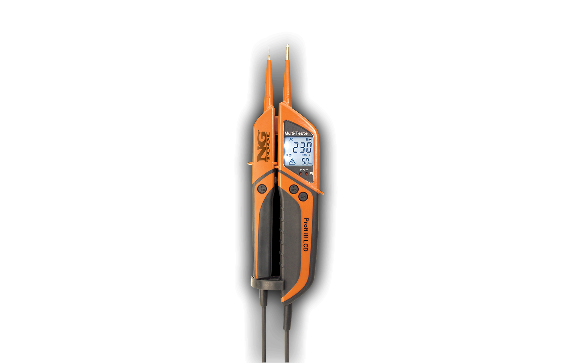 test proudových chráničů FI/RCD do max. 30 mA při 230 V pomocí dvou tlačítek