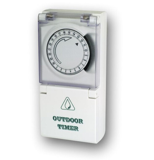 Denní mechanické spínací zásuvka ZS3 pro spínání spotřebičů ve vnějších prostorách (venkovní osvětlení, zavlažování, regulace filtrace bazénů).